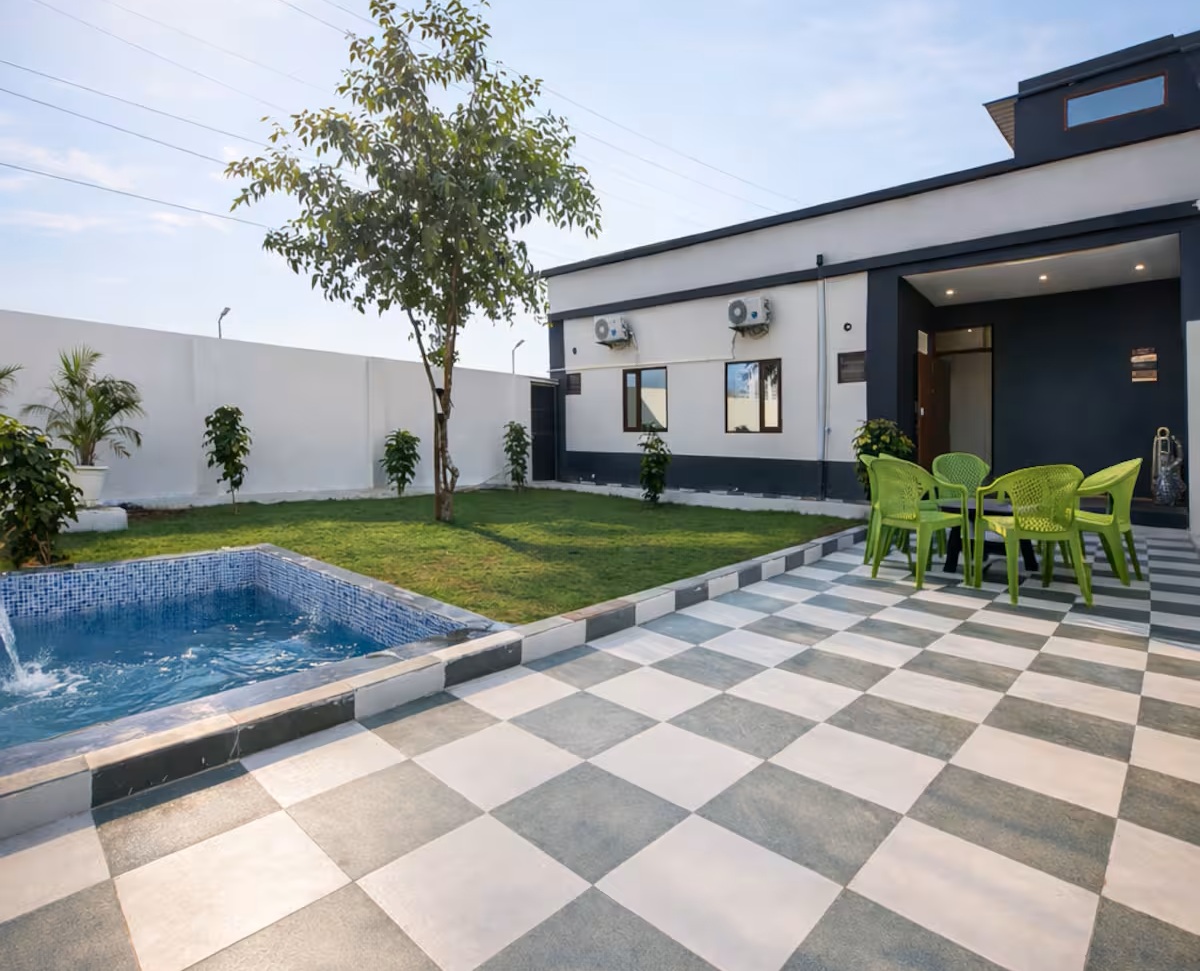 A2 Villa Sigma 1 is a private villa in Greater Noida offering a peaceful stay with a large green lawn and complete privacy. Ideal for families and small gatherings, the property features spacious bedrooms, a comfortable living area with DJ lights, and a calm natural setting just minutes from Expo Mart and Pari Chowk.